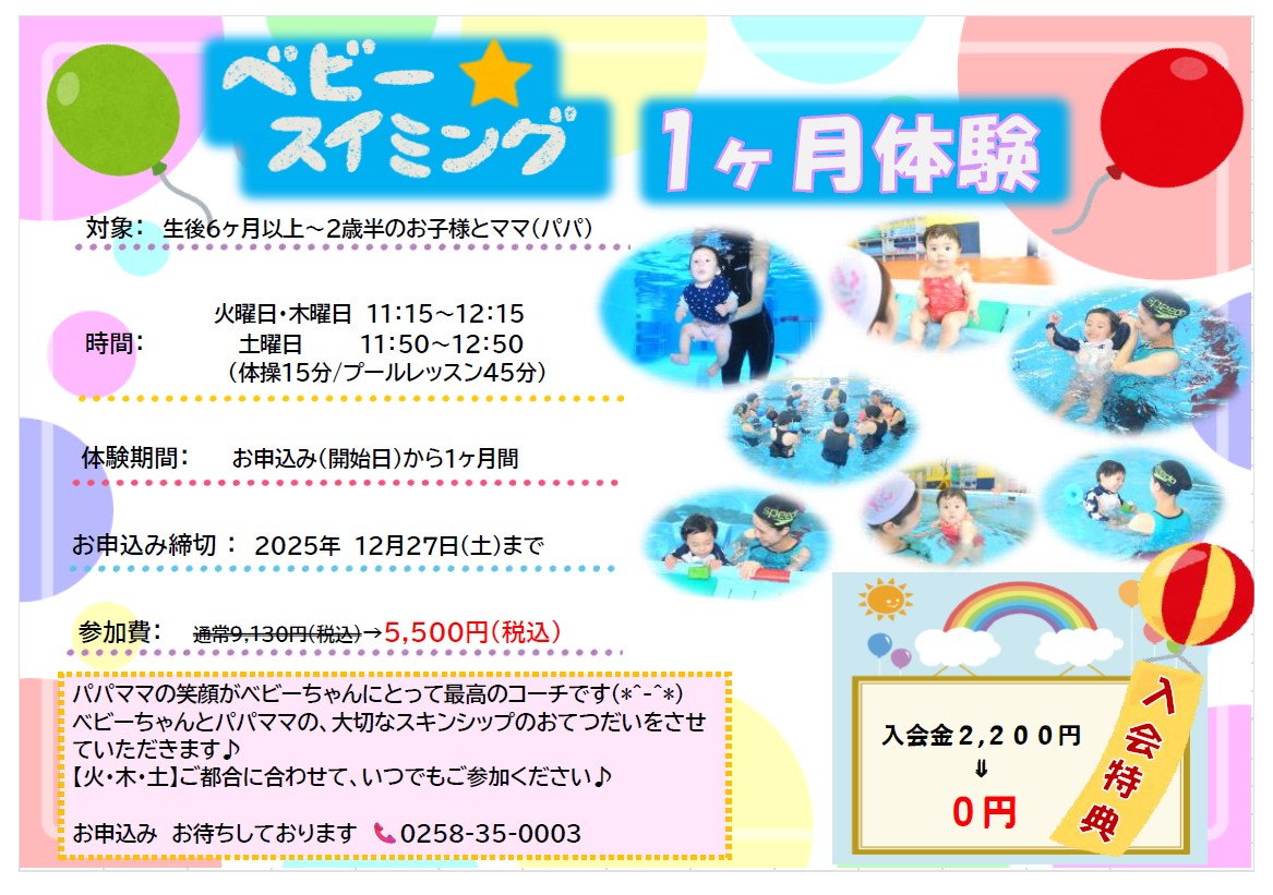 ただいまベビースイミング1ヶ月体験お申込み受付中です😊✨