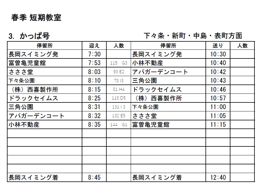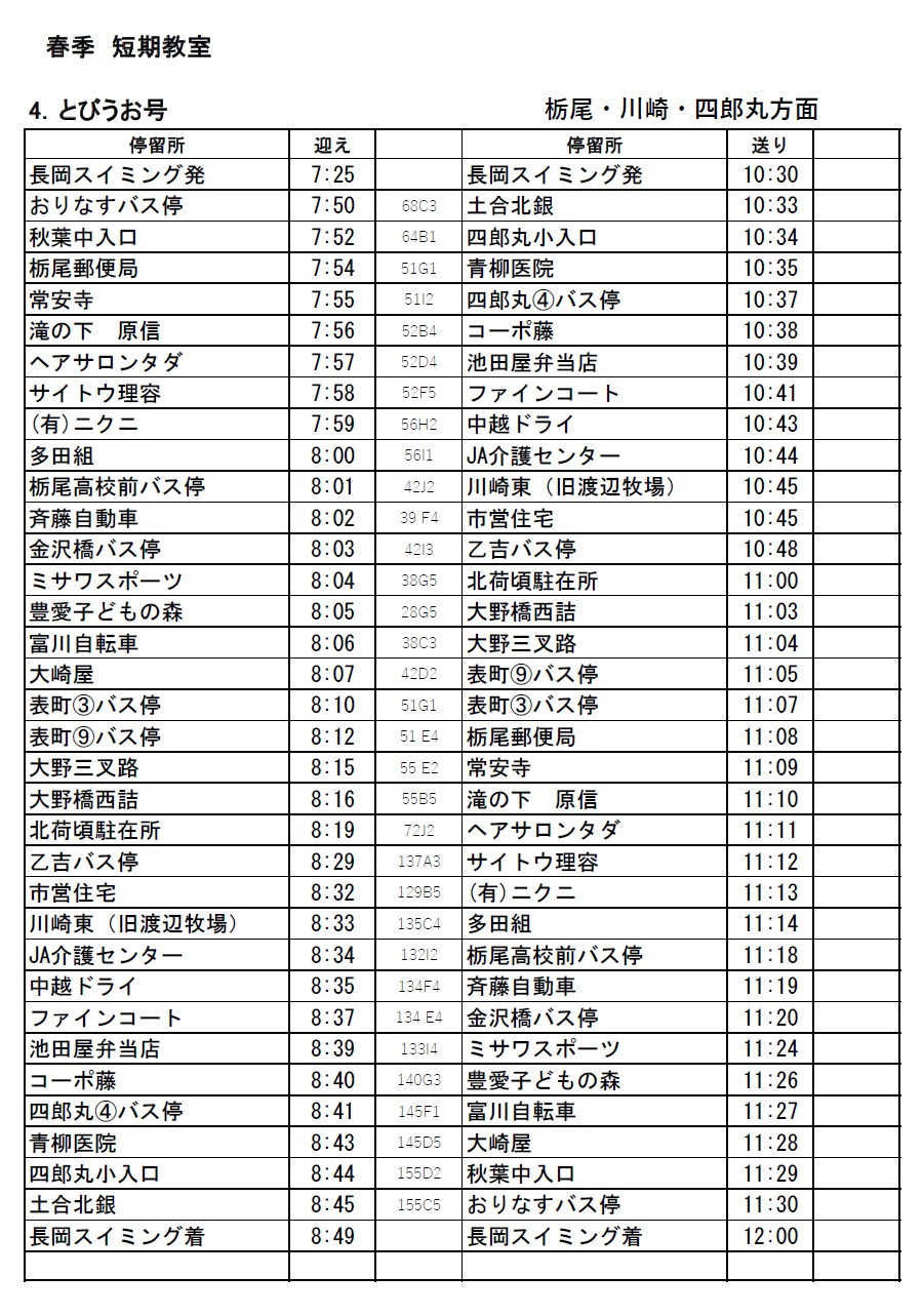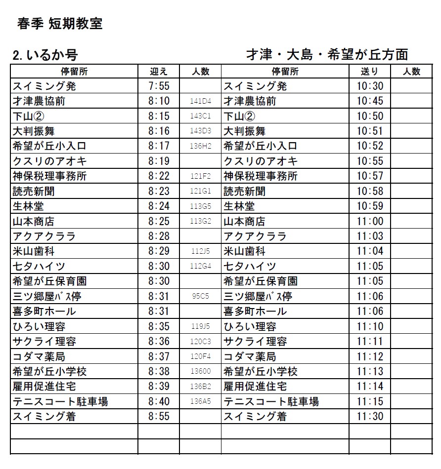 【春の短期教室バス停留所はこちら】