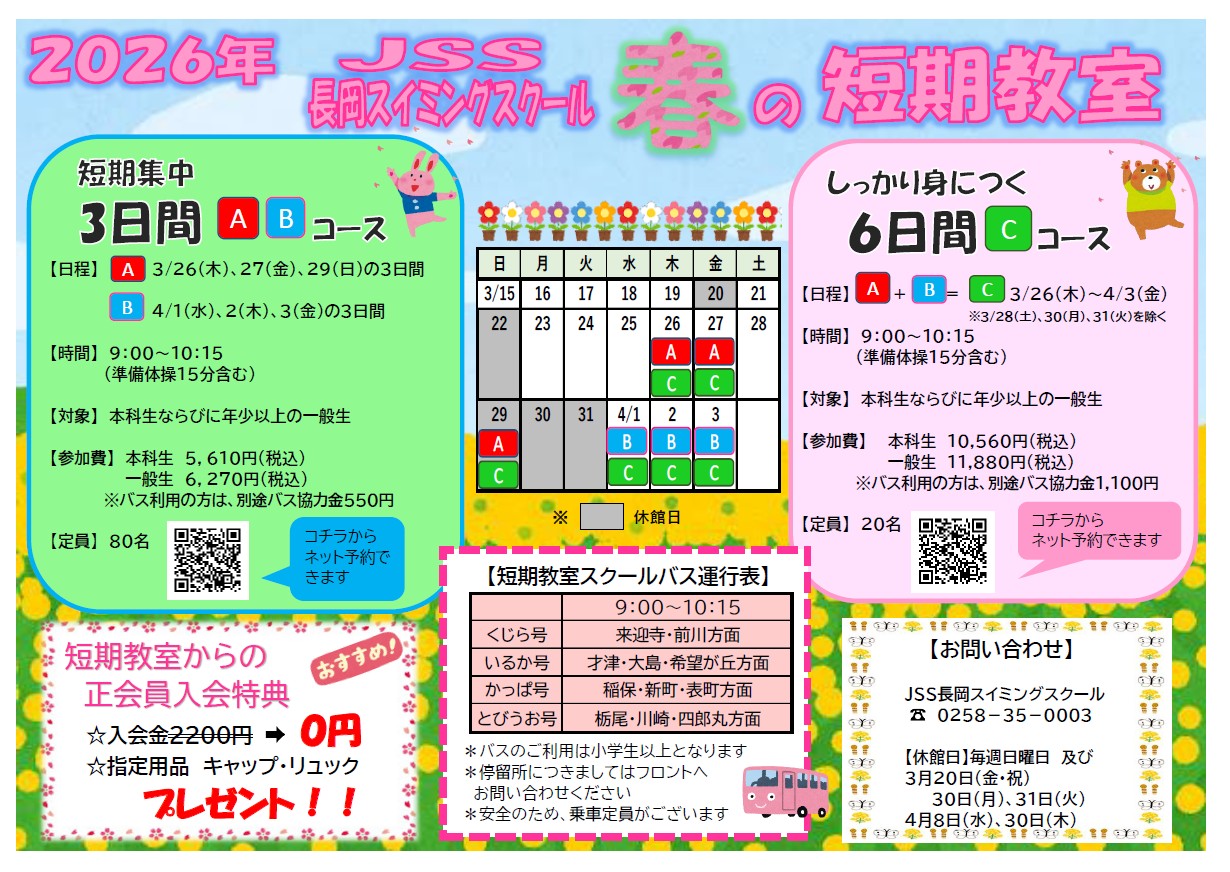 JSS長岡 春の短期教室のご案内です☺