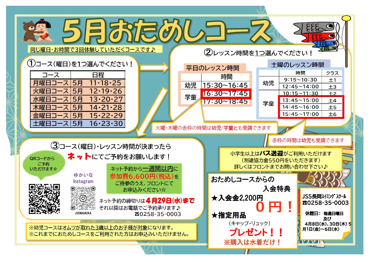 5月も納得の3回ご体験いただけるおためしコースを行います🌷