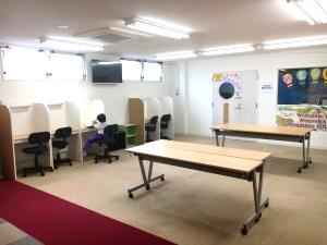 まず、以前まで休憩スペースとして使っていた 2階の英会話教室の前のスペースが広くなり、学習用の机も設置されました。