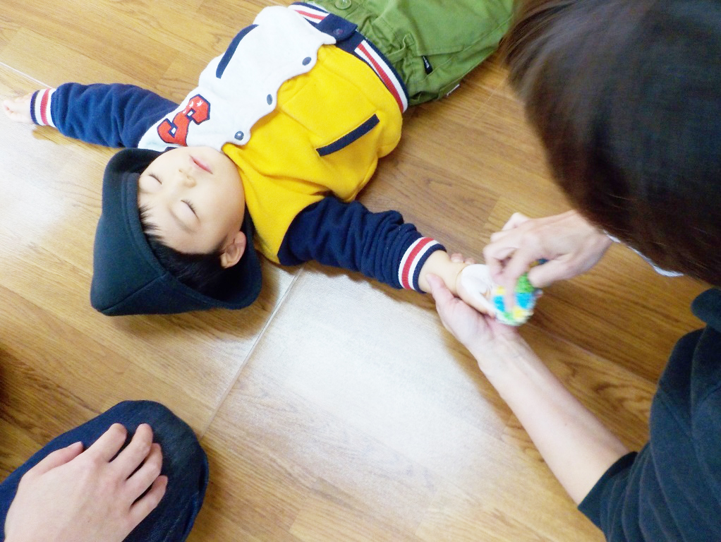 寝ながら、されるがままになっていた子がいました