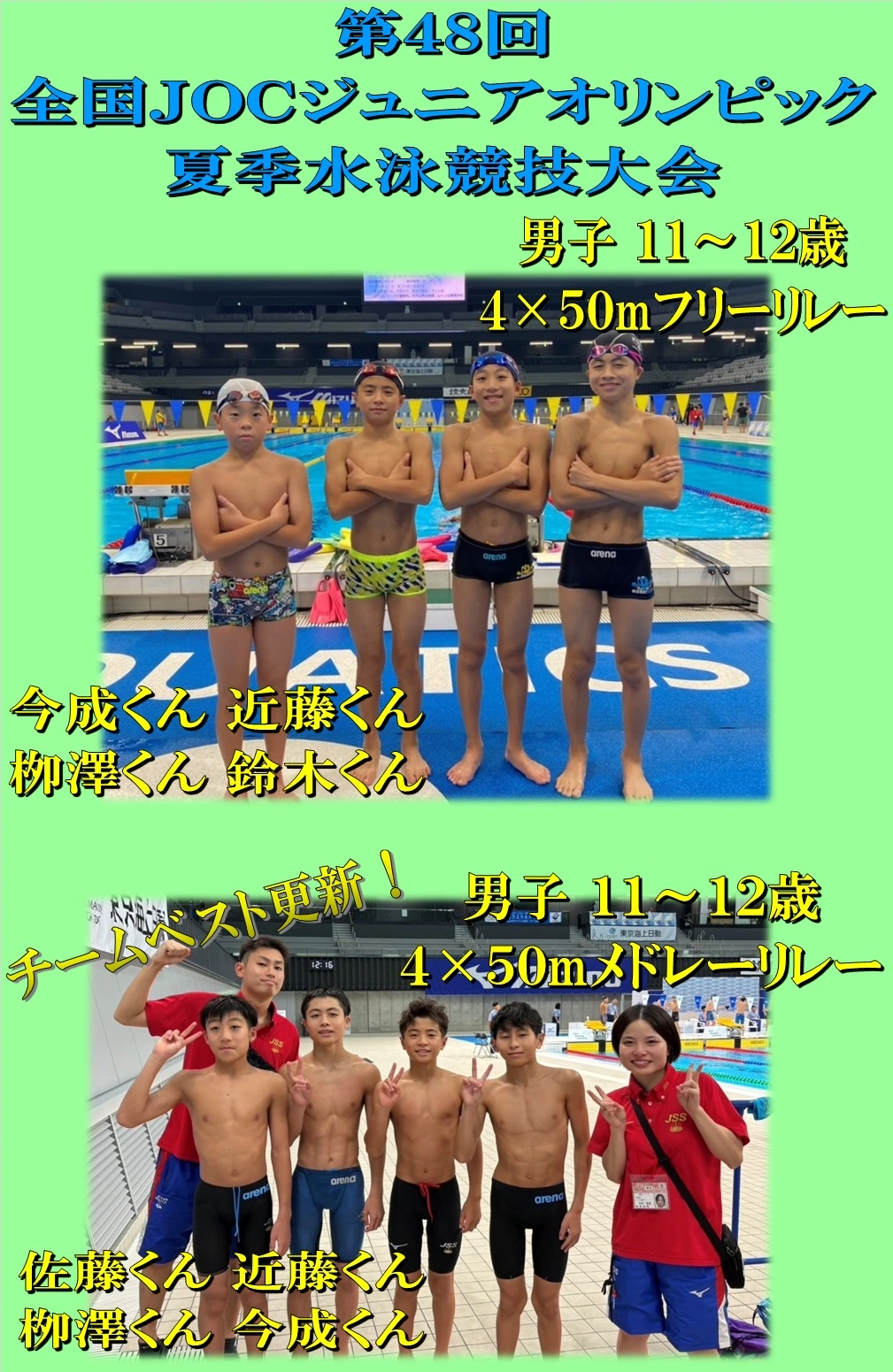 こちらも、7月6日(日)に行われた「新潟県スイミングクラブ協会 A級大会」において、男子4×50mメドレーリレーが全国ジュニアオリンピックカップ夏季大会の参加標準記録を突破いたしました!